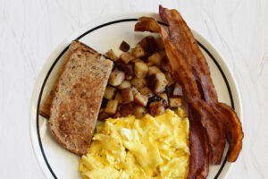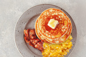 Buttermilk Pancakes with Bacon & Scrambled Eggs