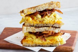 scrambled eggs,bacon, cheddar, grilled sourdough
