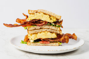 scrambled eggs, bacon, tomato, lettuce, black pepper balsamic aioli, white toast