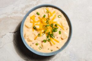 delicious baked potato loaded with all the fixin’s blended potatoes with light cream, uncured bacon and chives.