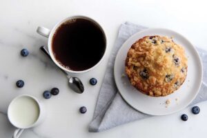 small hand-roasted coffee with a freshly baked muffin or bagel with cream cheese