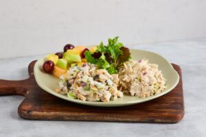 DC Chicken Salad , Albacore Tuna Salad served with choice of Fresh Fruit Medley, Caesar or Mixed Greens Salad
