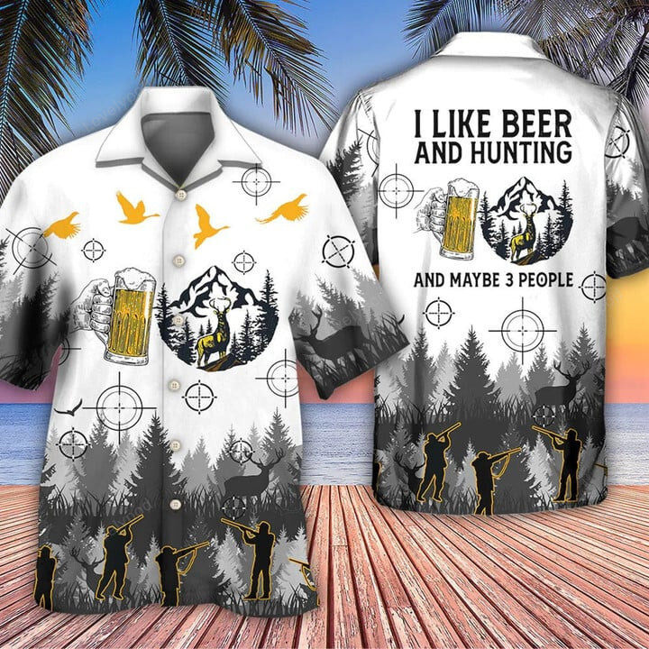 Beer I Like Beer And Hunting And Maybe 3 People Hawaiian Shirt