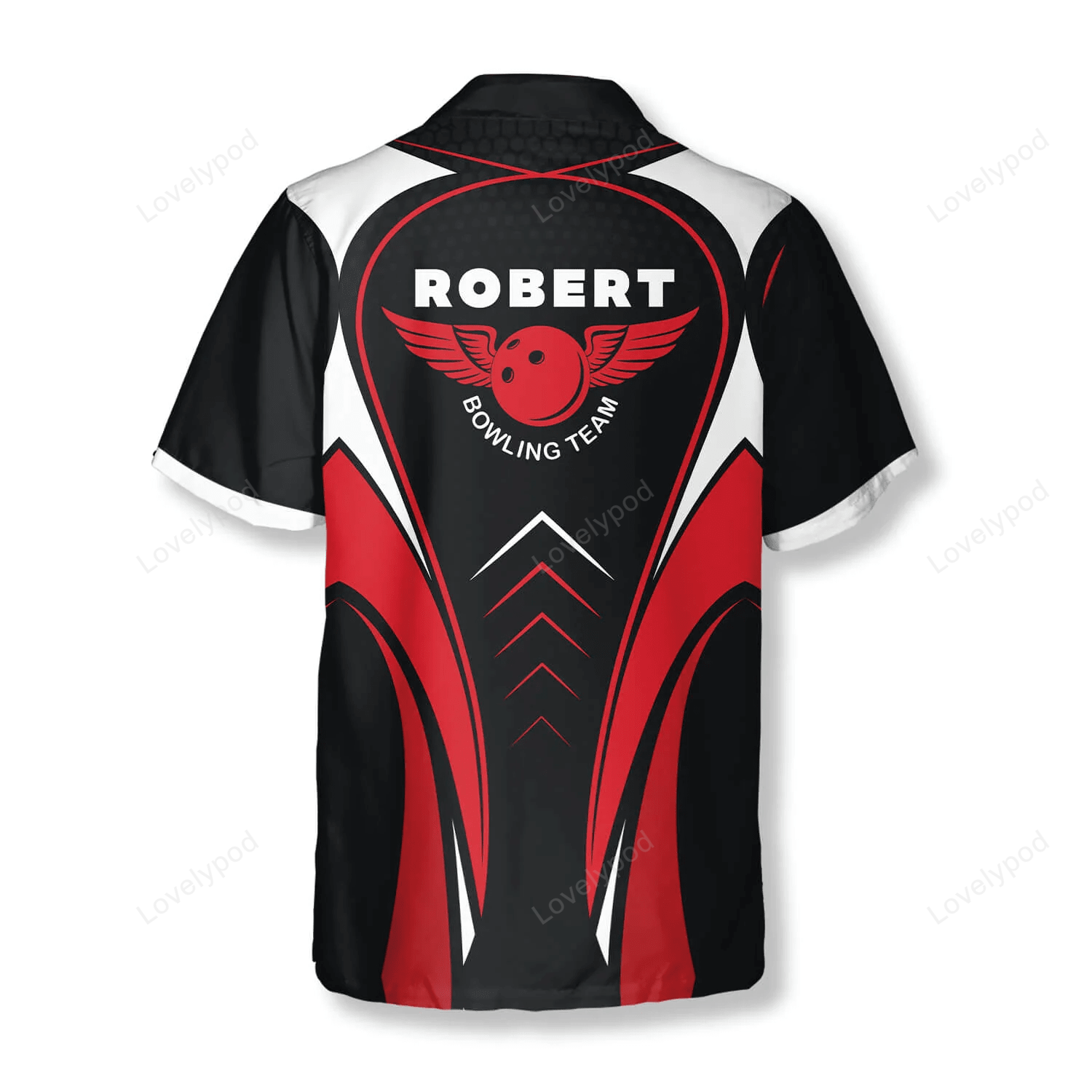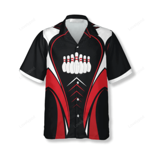Bowling Pins Red Black Custom Bowling Hawaiian Shirt