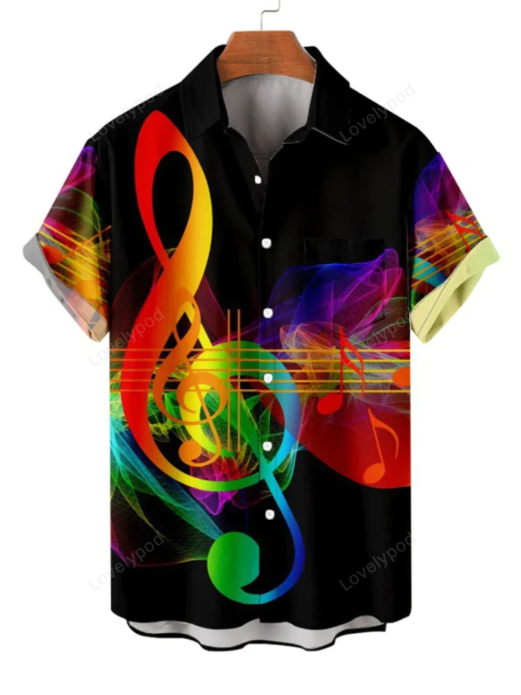 Colorful Musical Note Print Casual Shirt