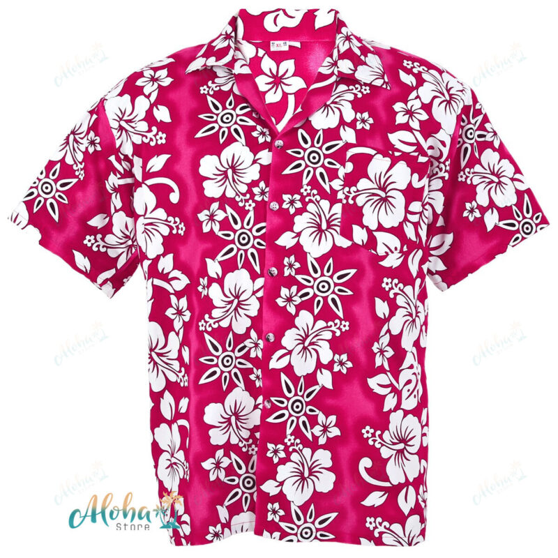 Hawaiian Shirt Aloha Hibiscus Sun Stripe Holiday Beach Pink Hf261p