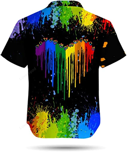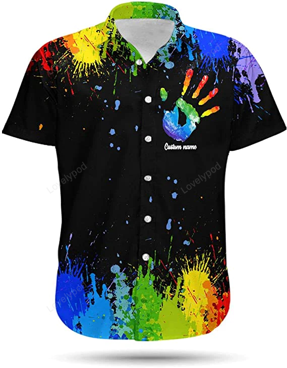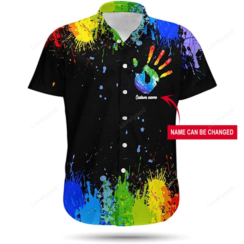 LGBT Custom Name Aloha Hawaiian Shirts For Summer, Personalized Hand Rainbow Paint Colorful LGBT Hawaiian Shirts