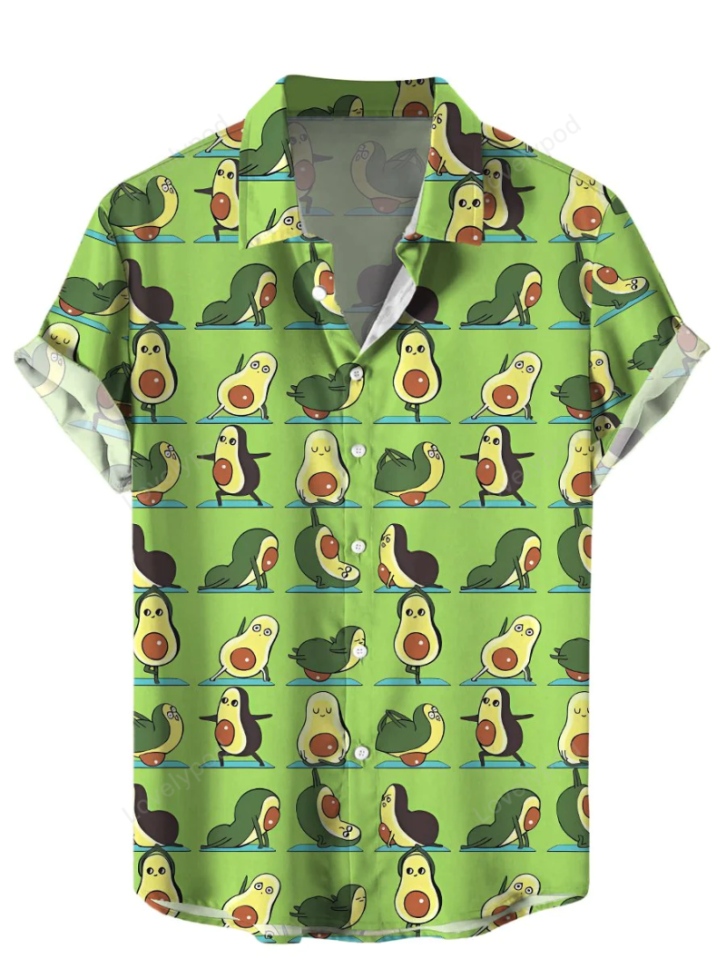 Men’s Hawaiian Shirts Avocados Yoga Print Short Sleeve Shirt