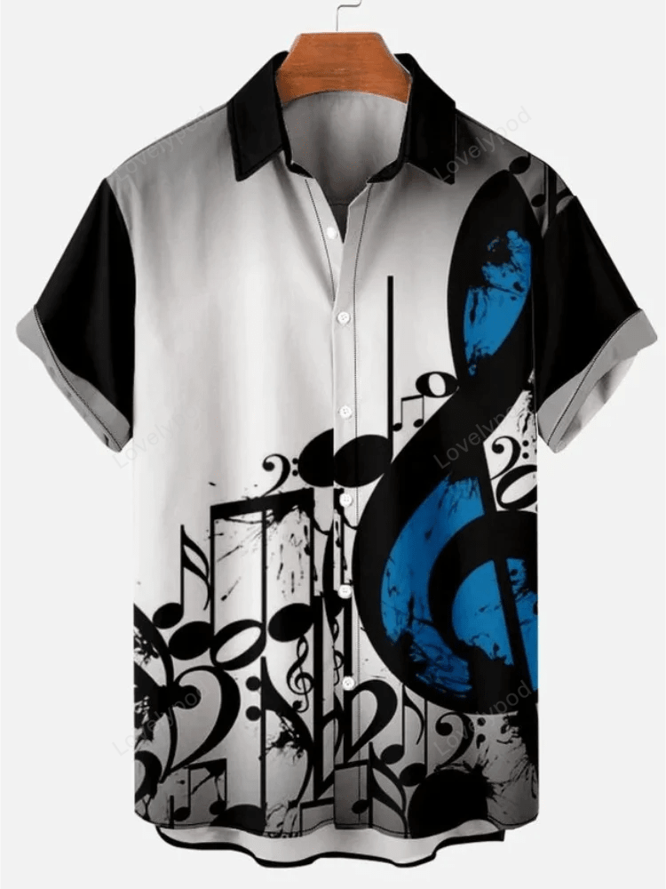 Men?s Music Note Color Block Casual Tribal Short Sleeve Hawaiian Shirt