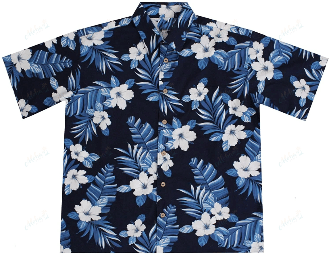 Men’S Navy Blue Hawaiian Shirts With Hibiscus Flowers