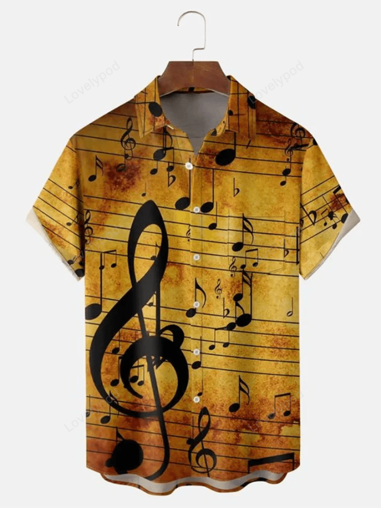 Music Element Fashion Print Beach Short Sleeve Shirt