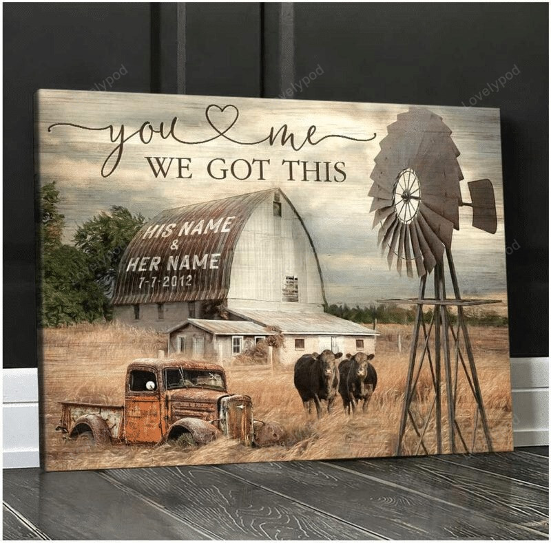 Personalized Black Angus Couple Canvas for Farmhouse, Wedding Anniversary Gift for Husband And Wife