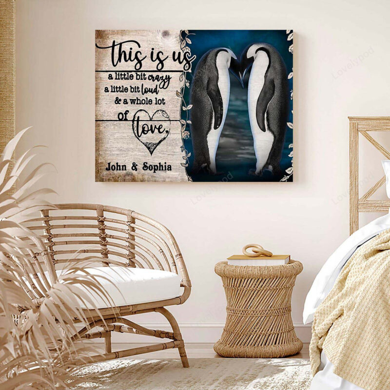 Personalized Penguin Couple Wall Art, This is us Whole lot of love Canvas for Wife