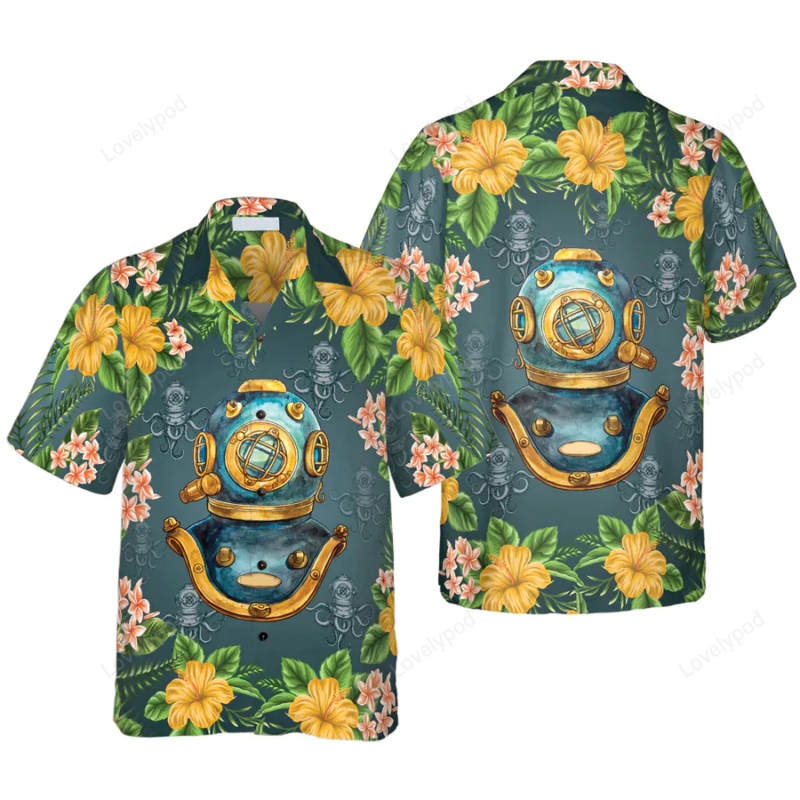 Scuba Diving Vintage Helmet Hawaiian Shirt,