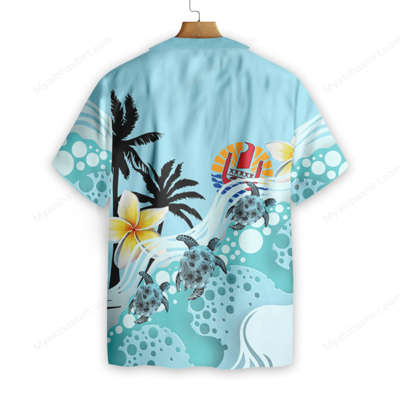 Tahiti Blue Turtle Hibiscus Hawaiian Shirt