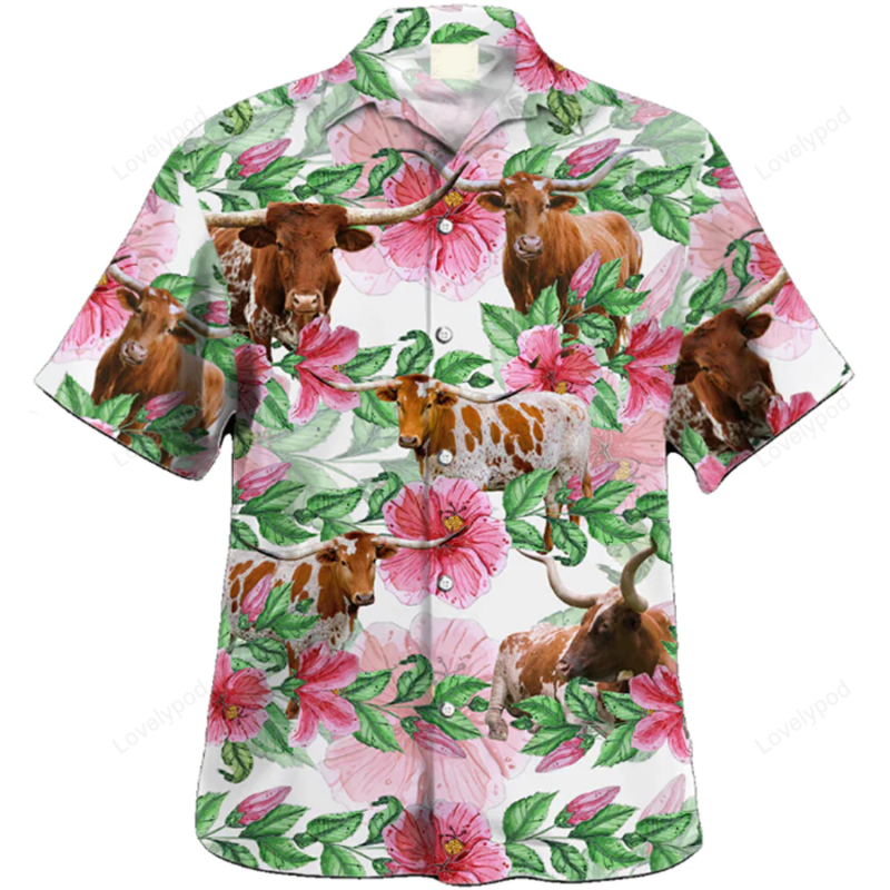 Texas Longhorn cow Hawaiian Shirt, Farmer Hawaiian Shirts,